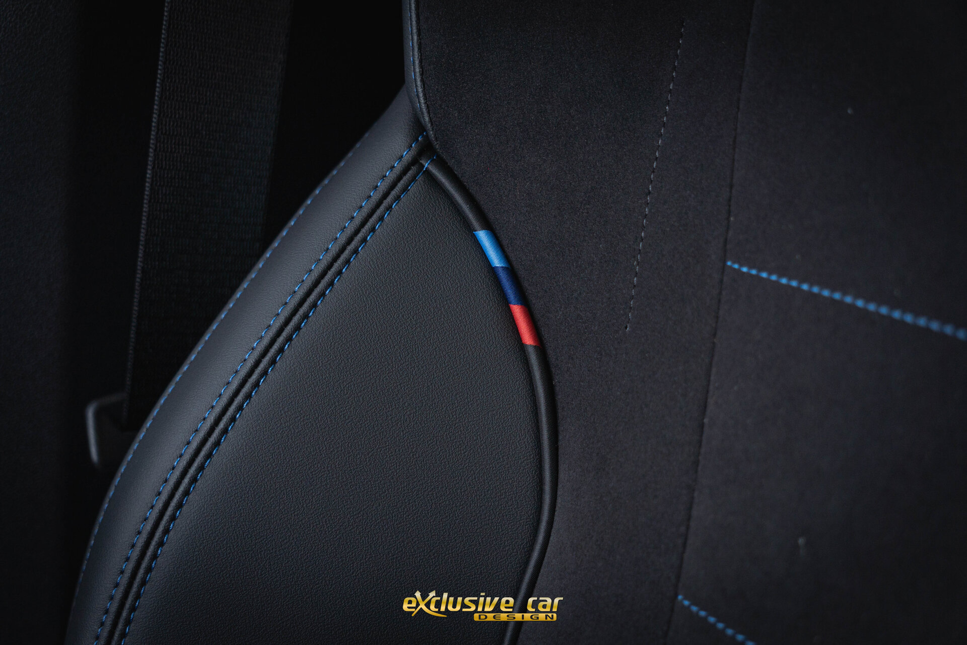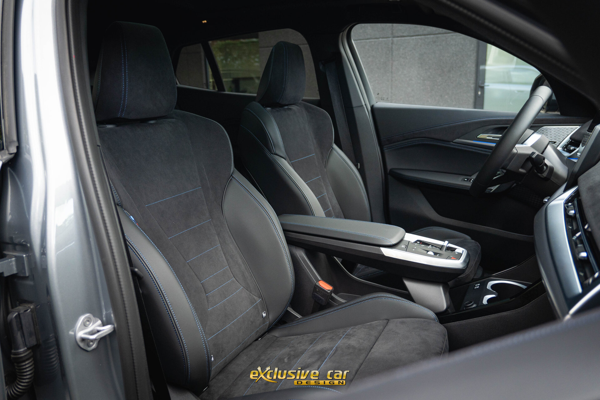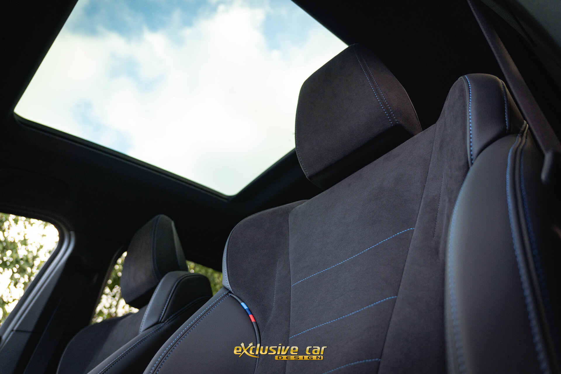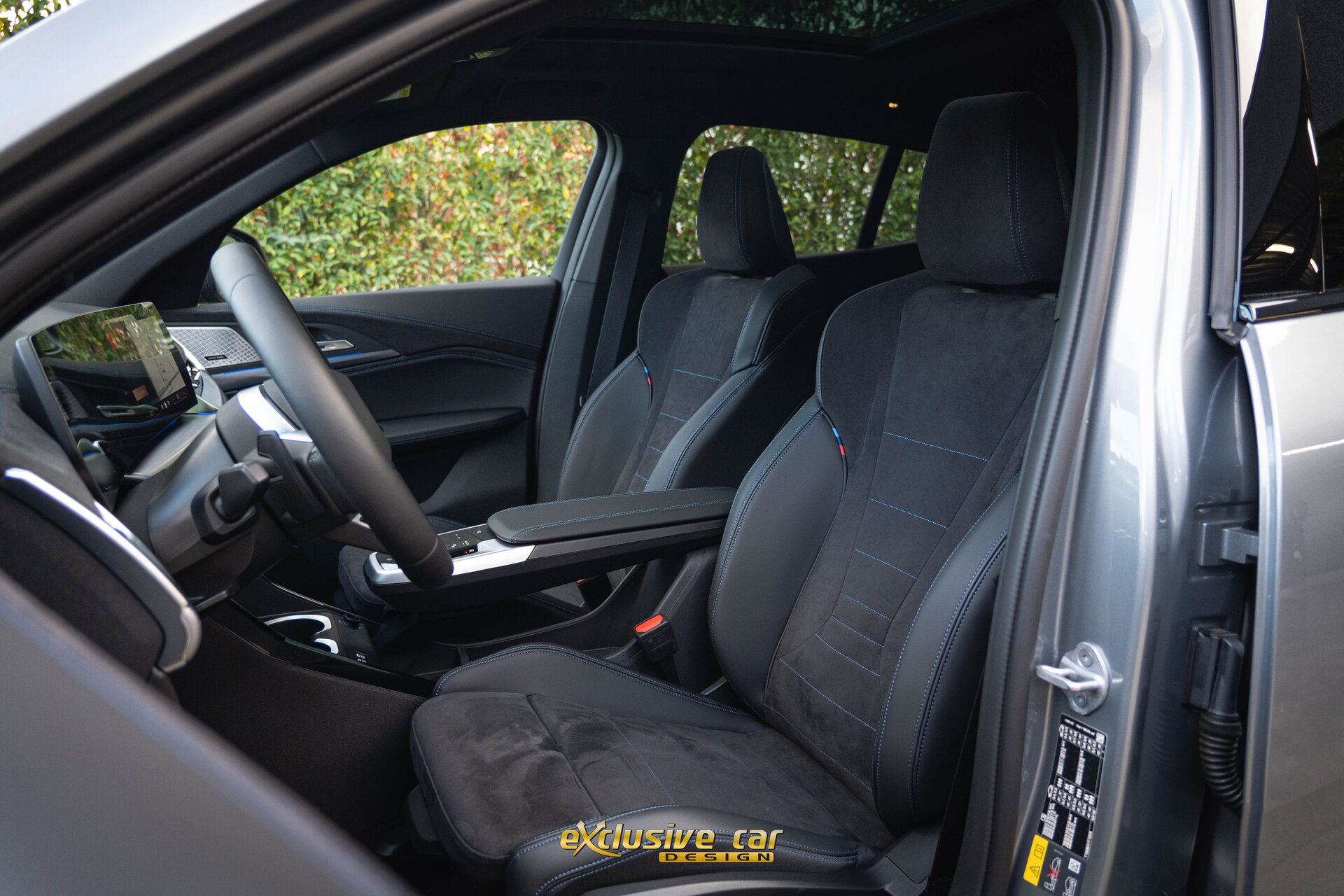 • Zwart M Sportinterieur in Alcantara en Veganza leder, met zwarte contraststiksels