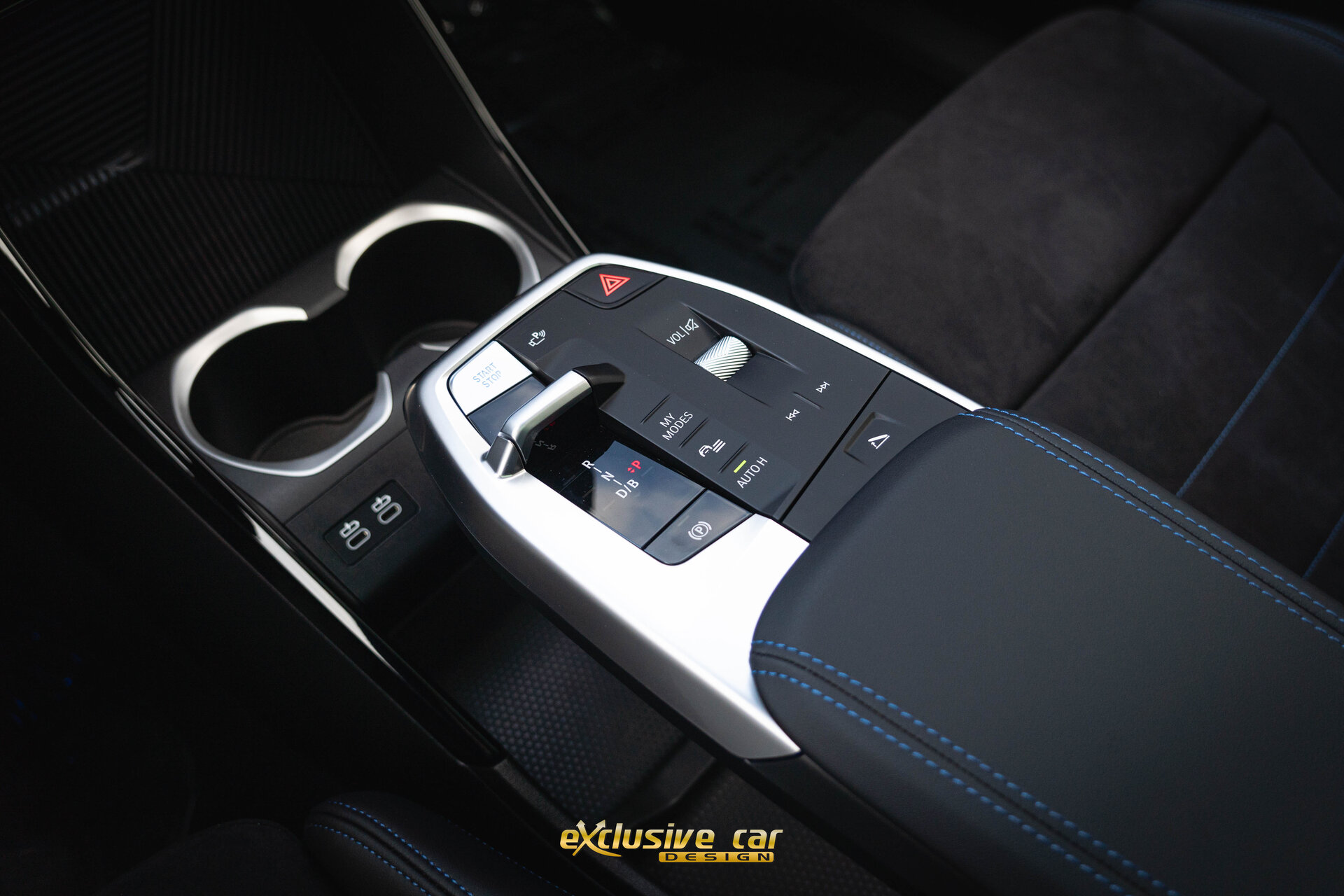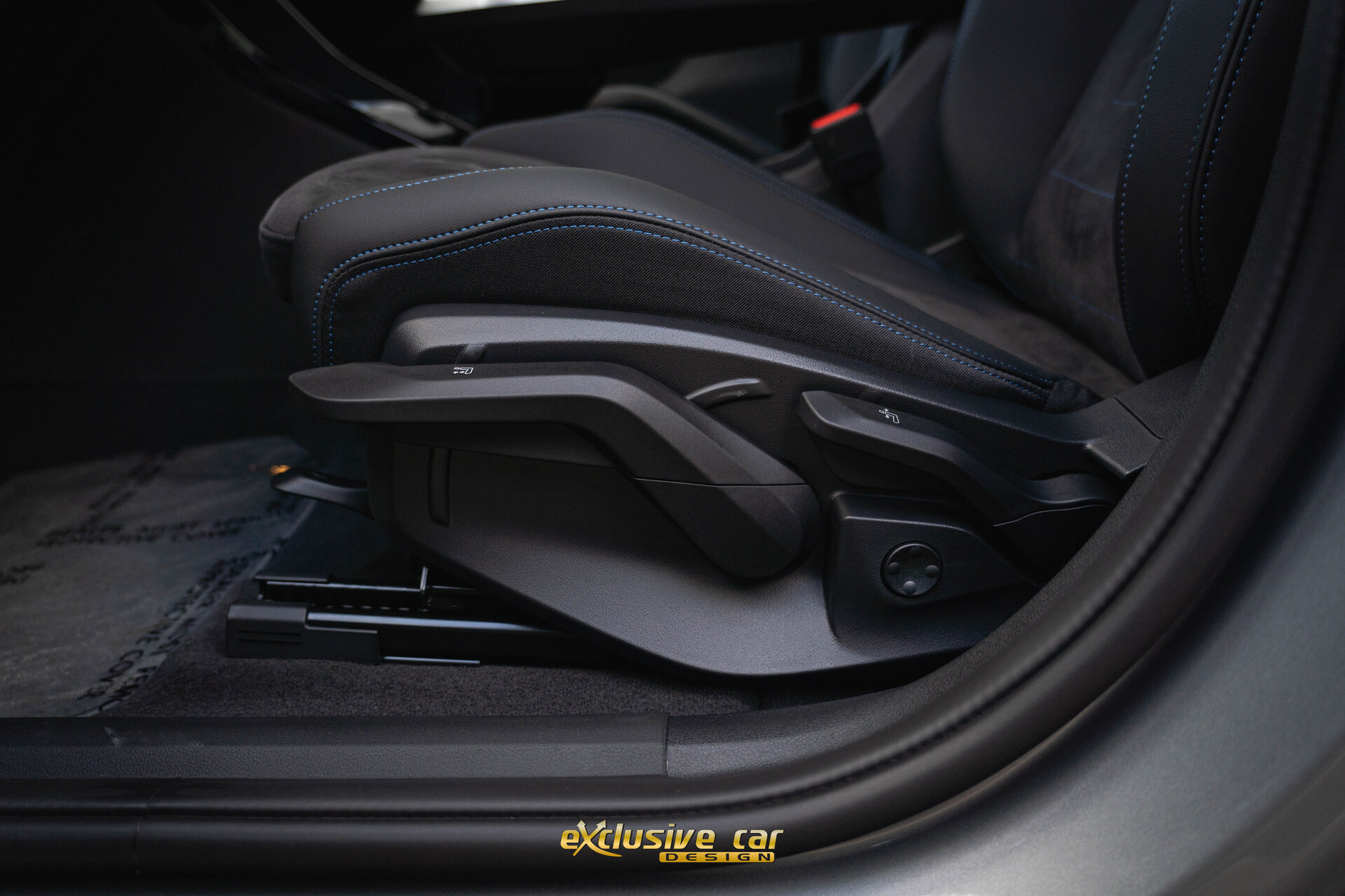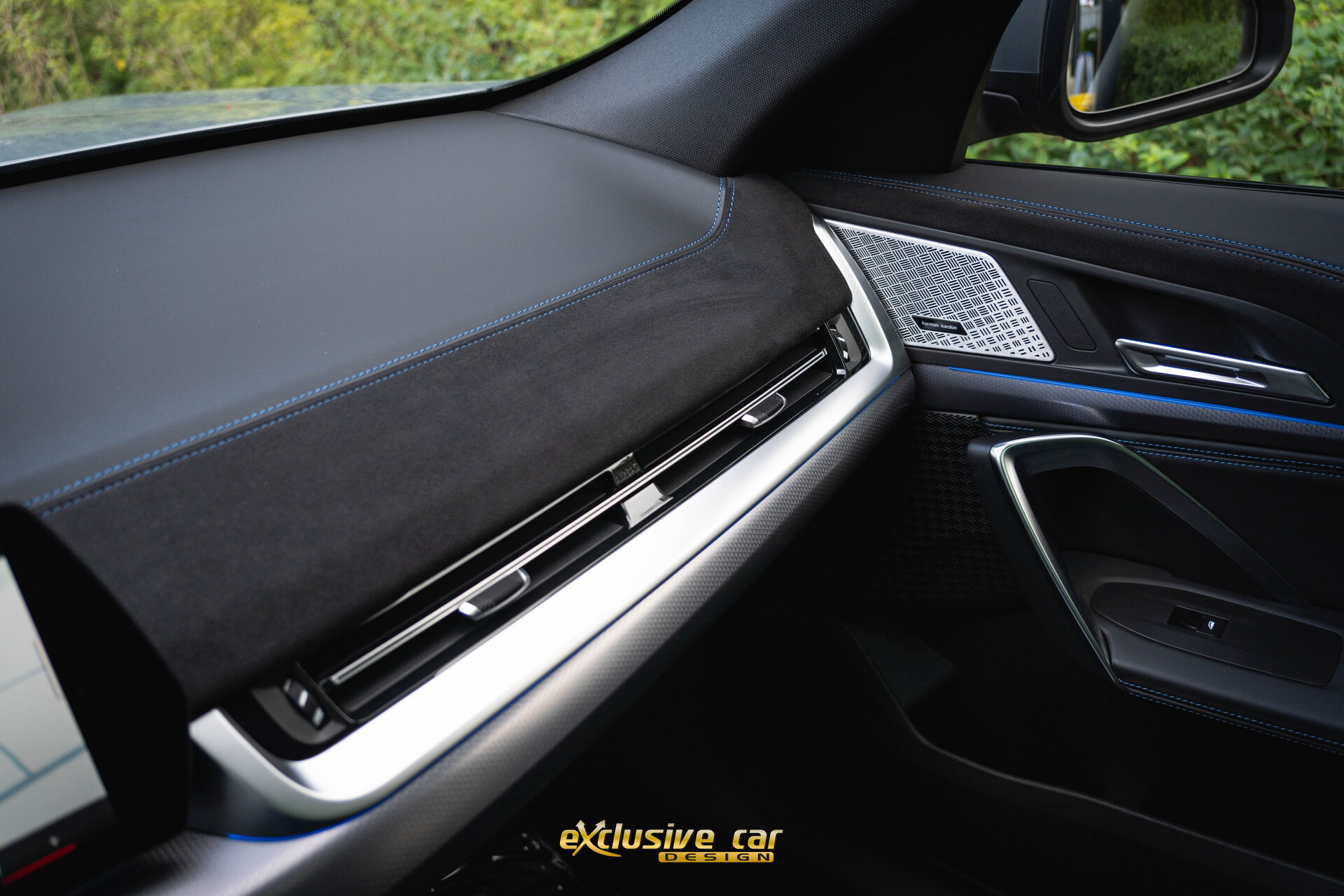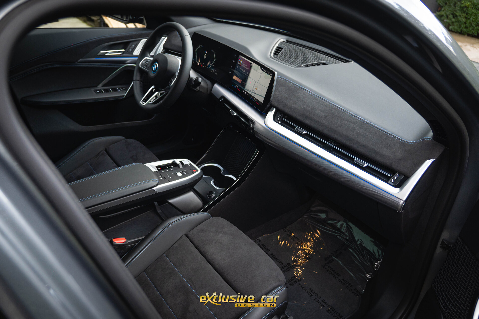 • Zwart M Sportinterieur in Alcantara en Veganza leder, met zwarte contraststiksels