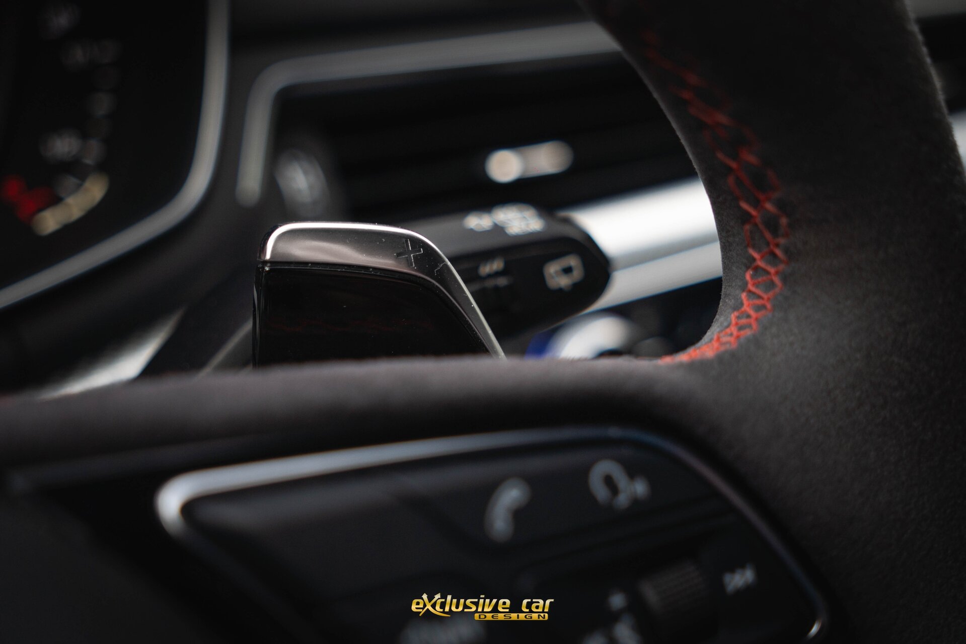 - Multifunctional flat-bottomed sport steering wheel in Alcantara
