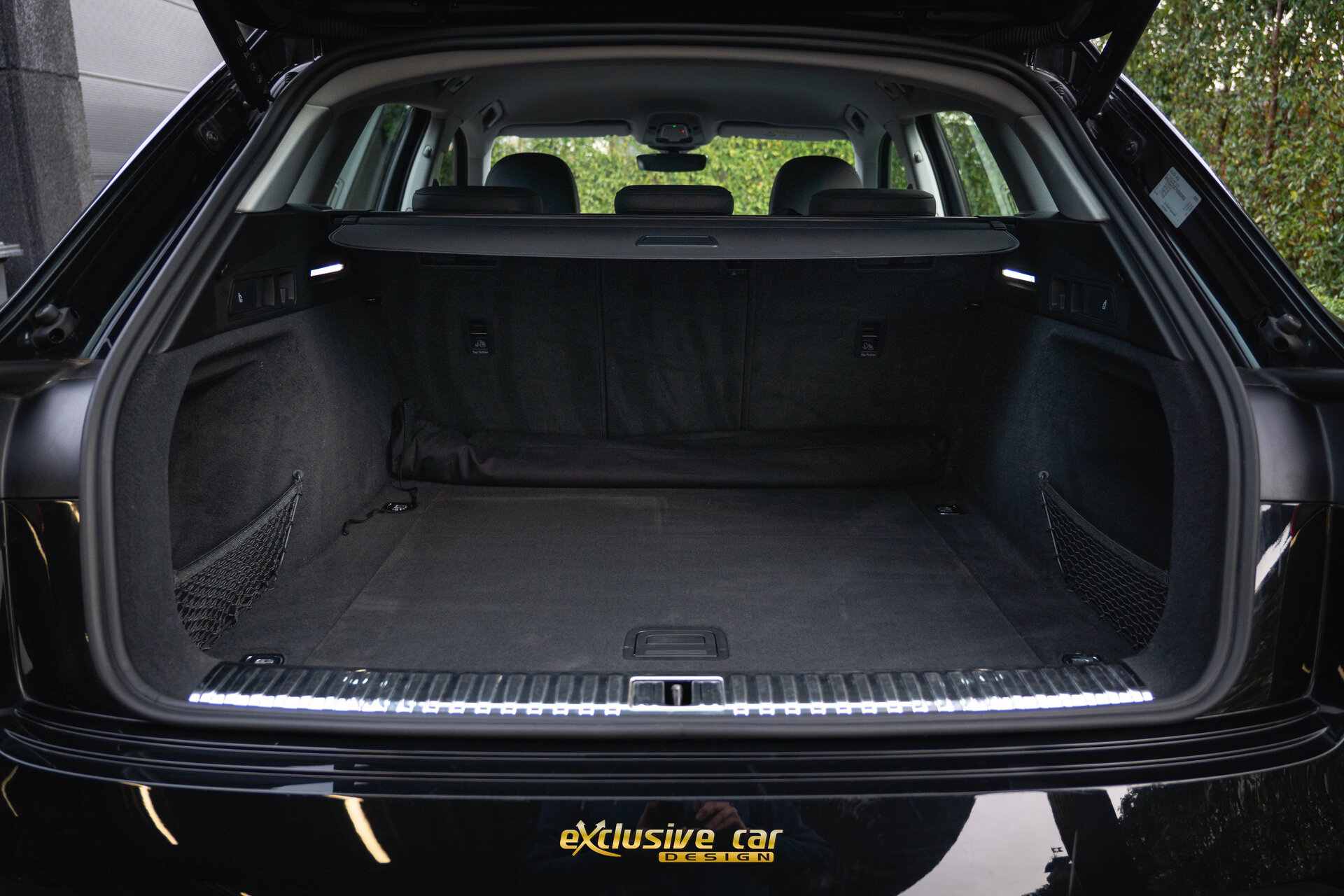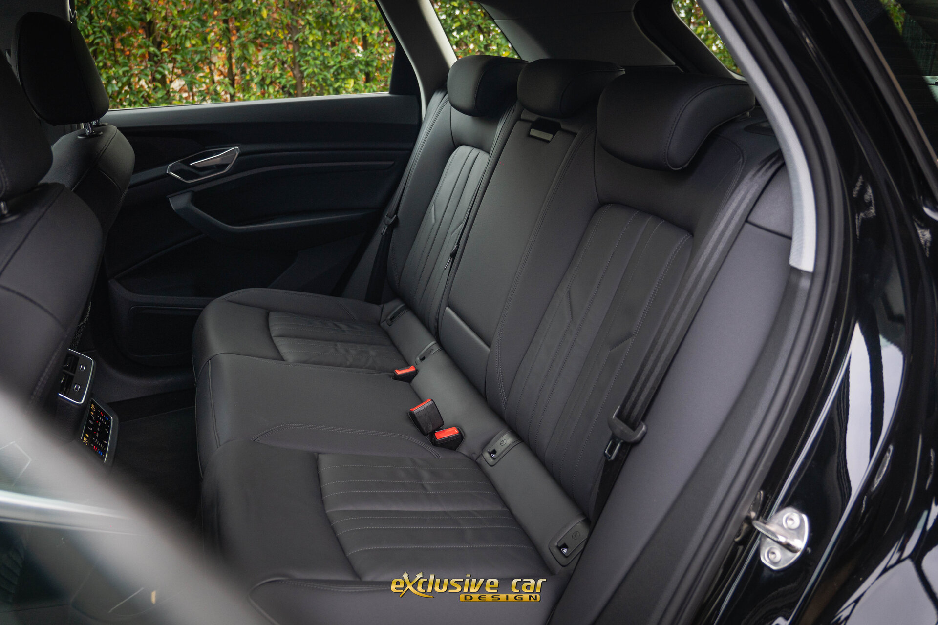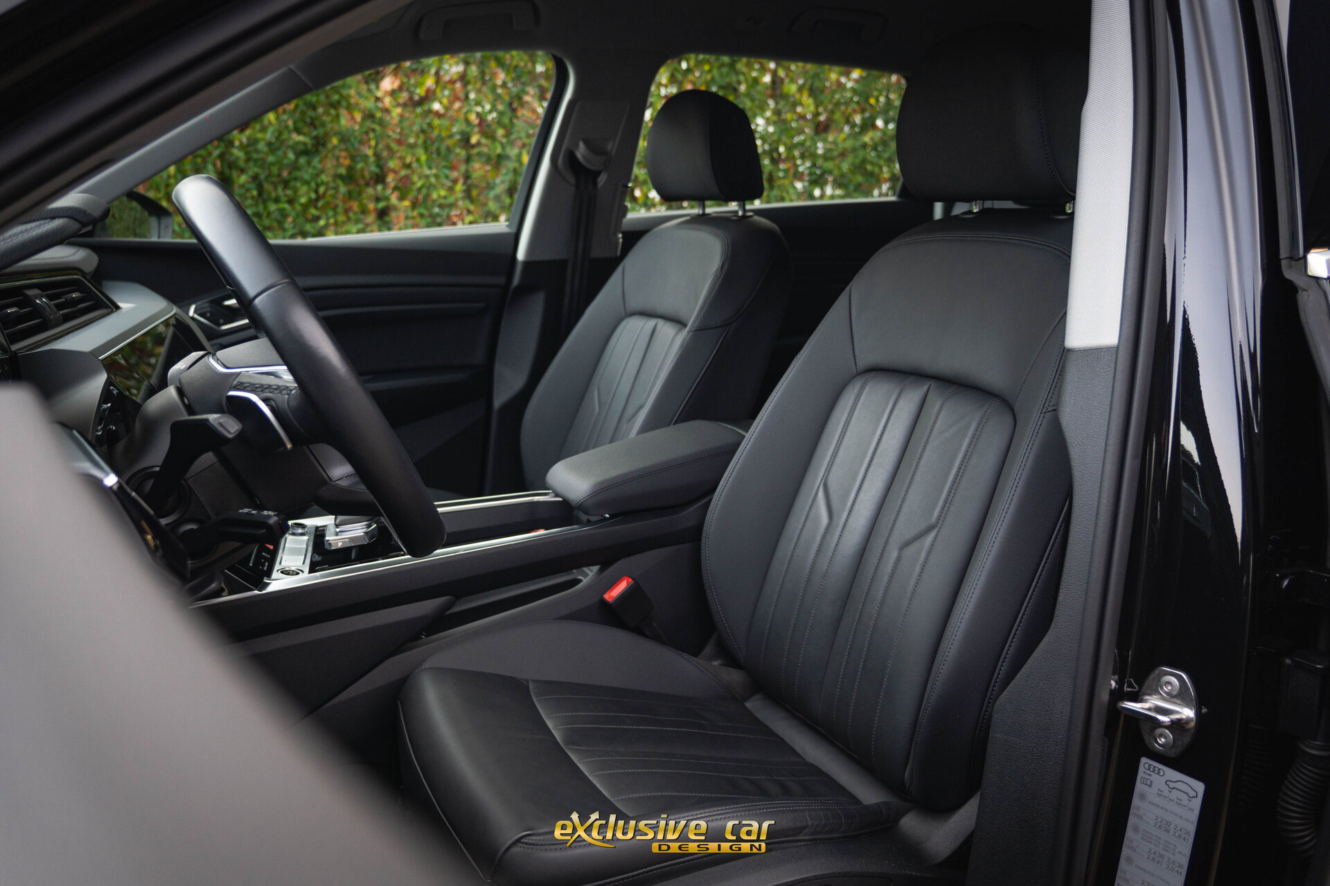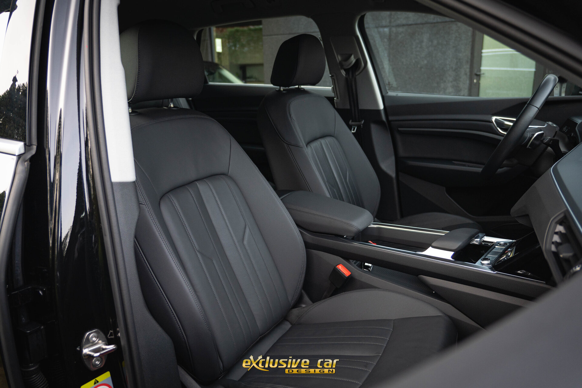 - Sportinterieur in zwart leder, met sierstiksels