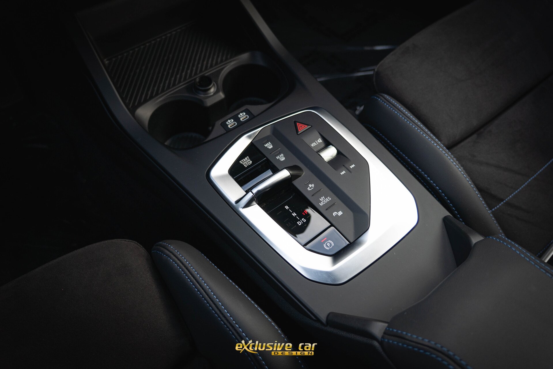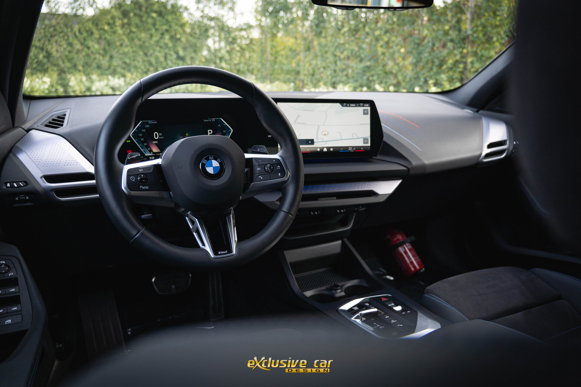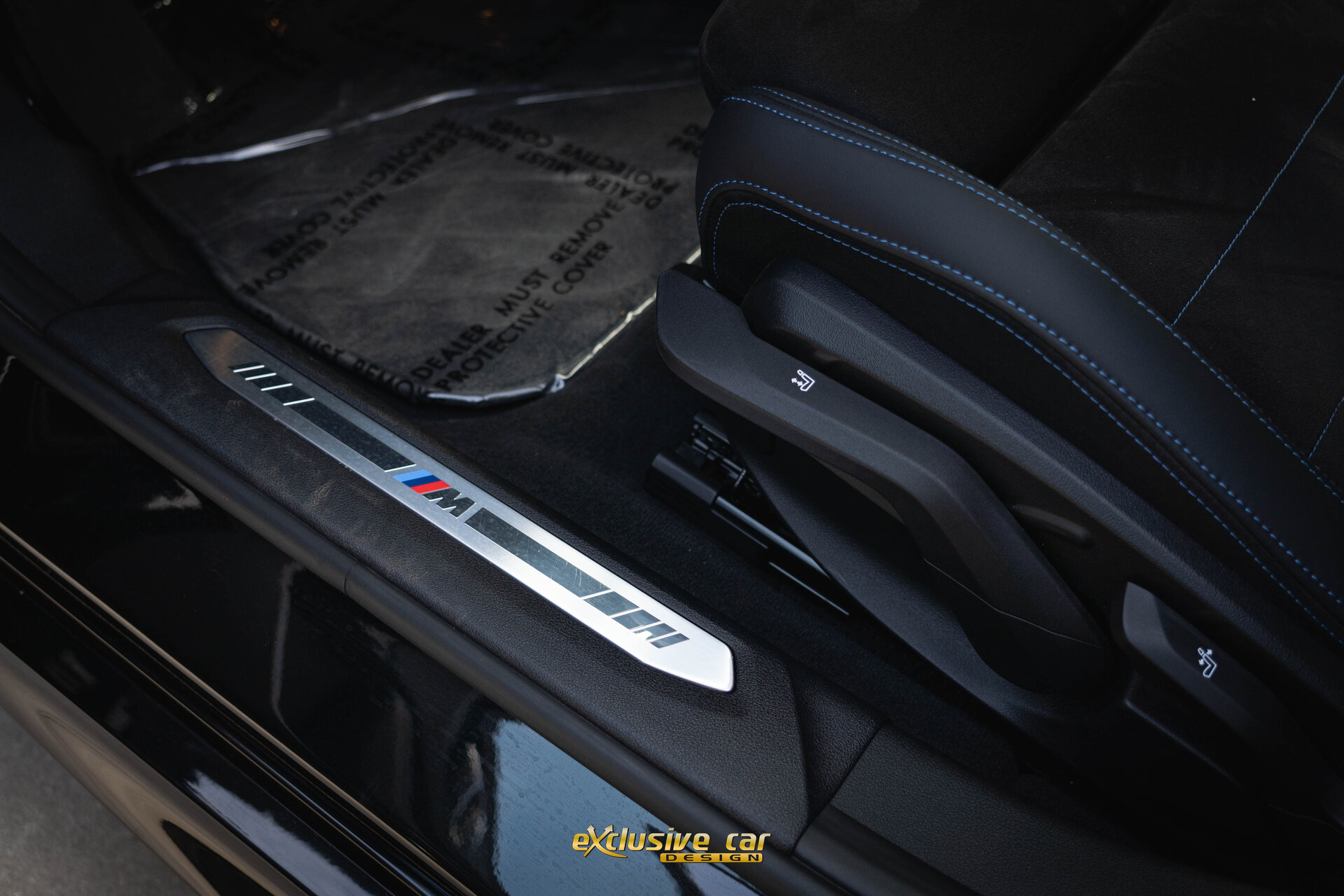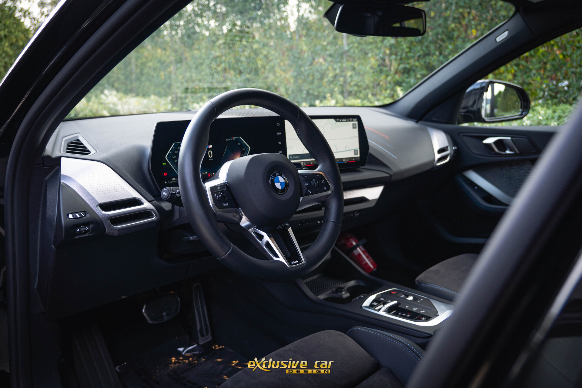 - M Sportinterieur in Veganzaleder en Alcantara, met blauwe contraststiknaad
