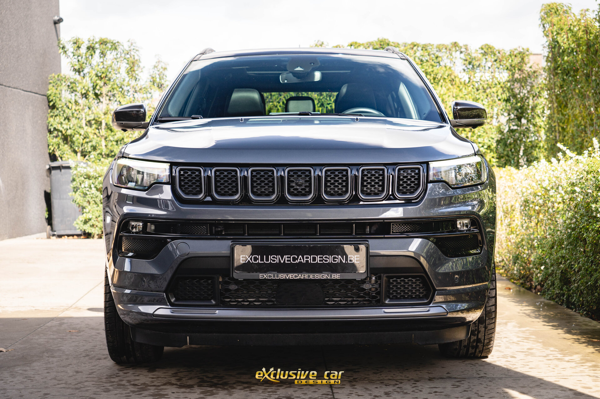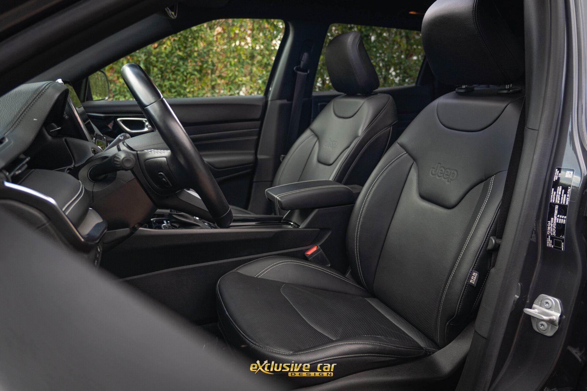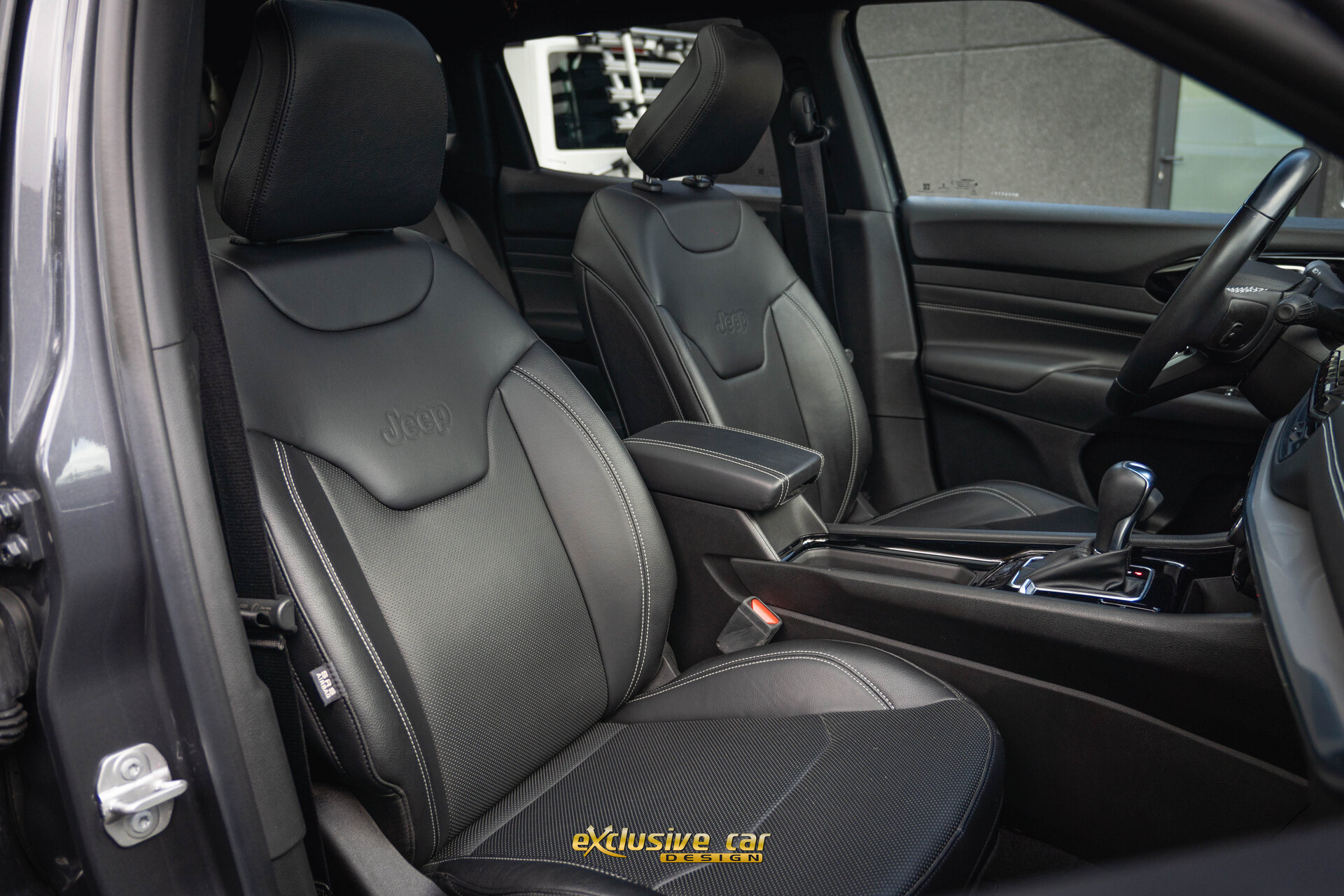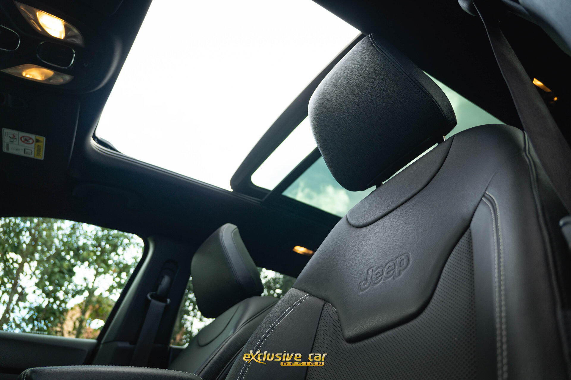 - Zwart dak, raamomlijsting en Jeep logo's