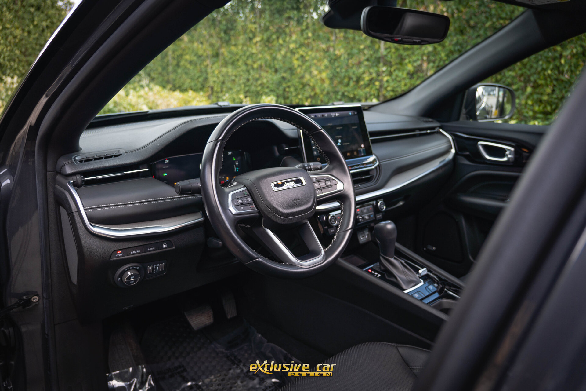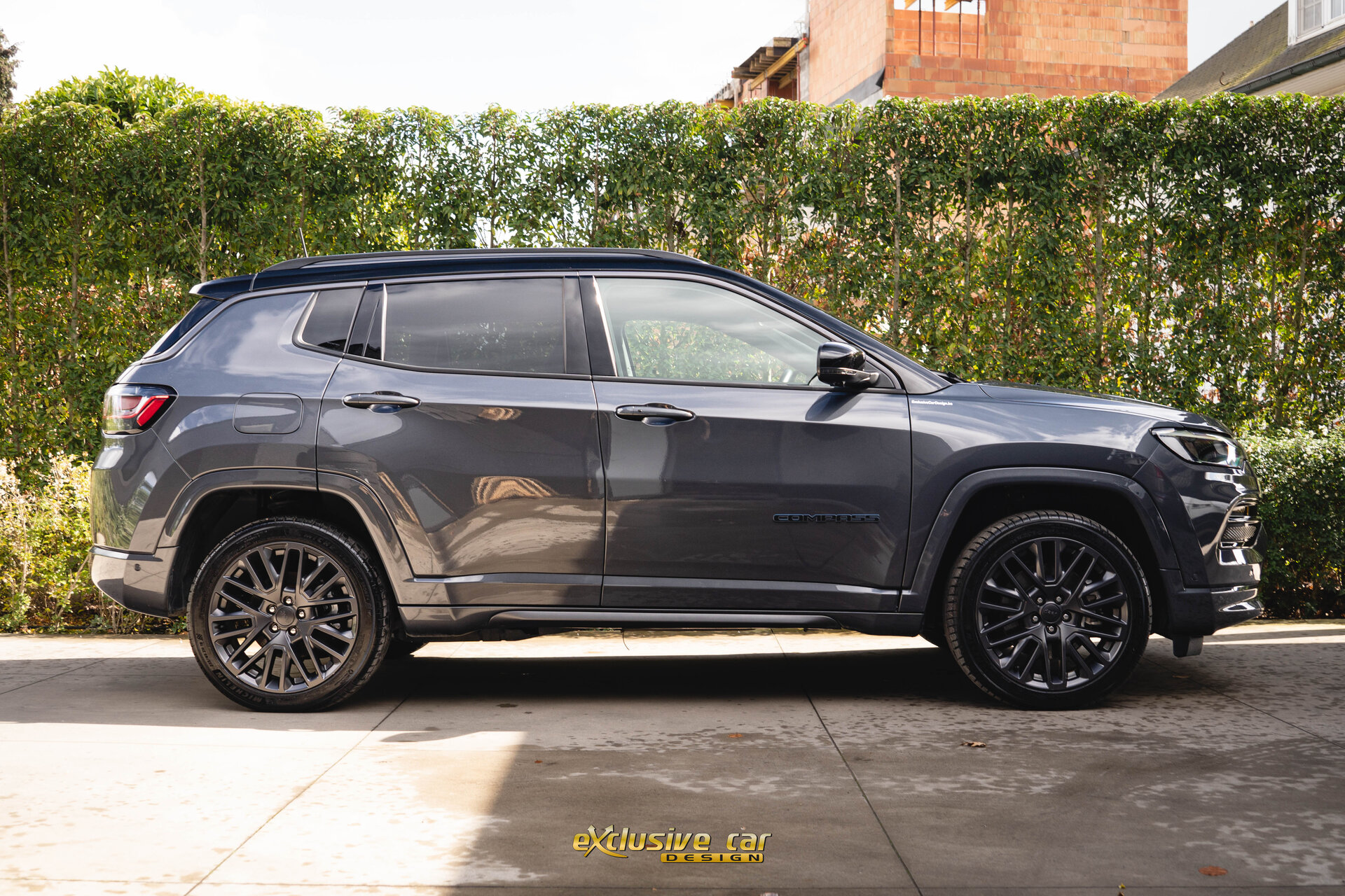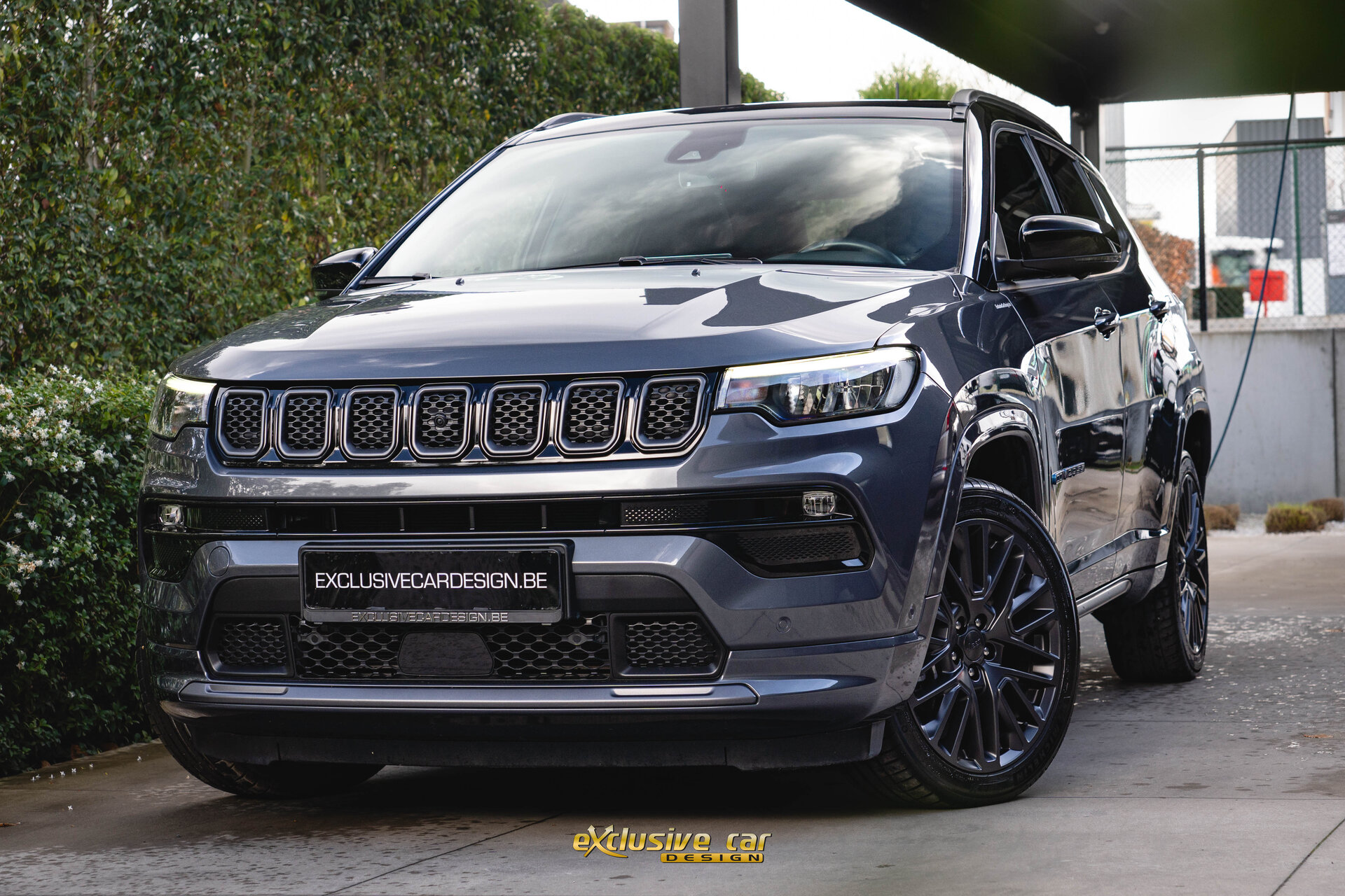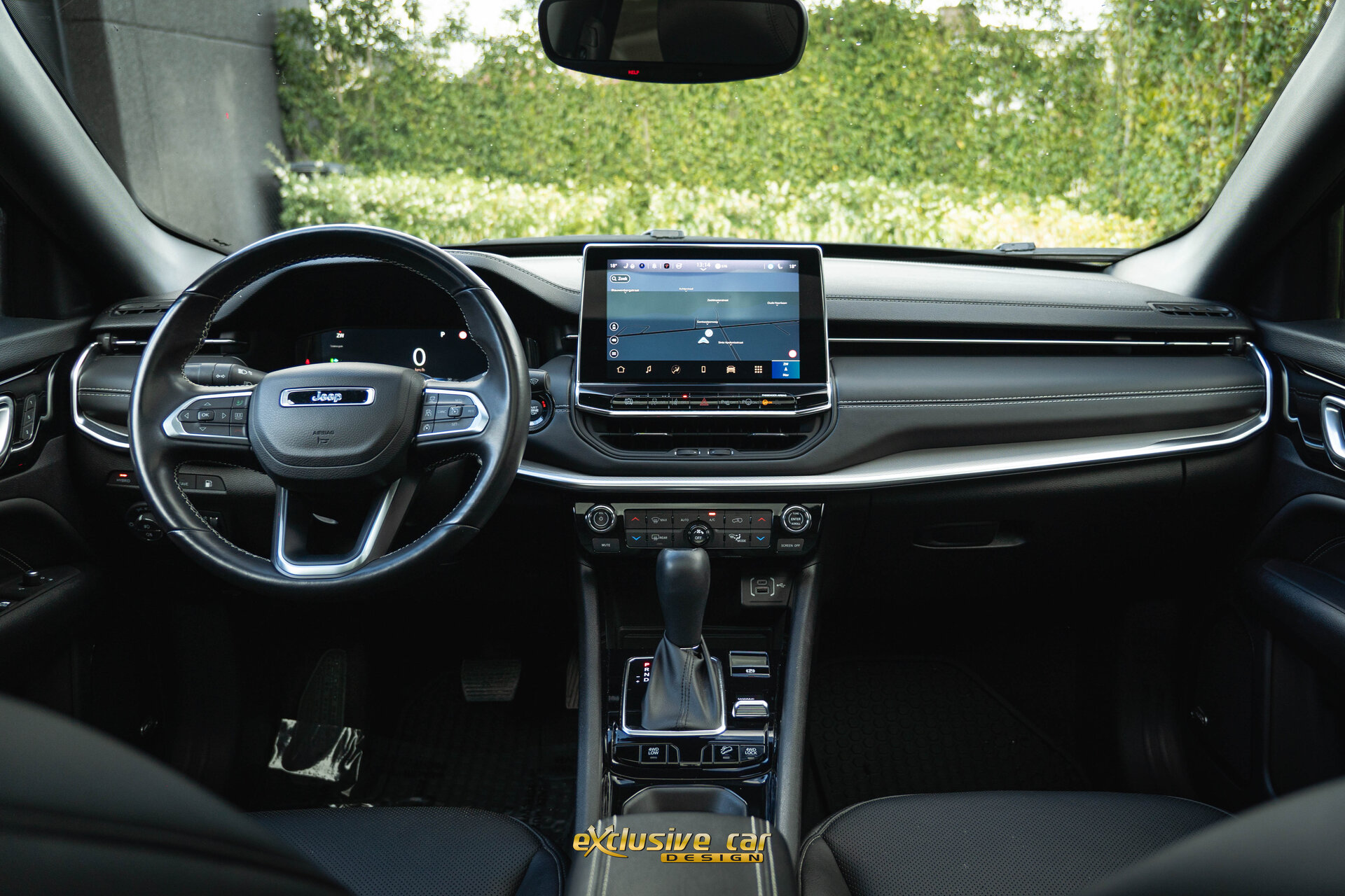 - Zwart dak, raamomlijsting en Jeep logo's