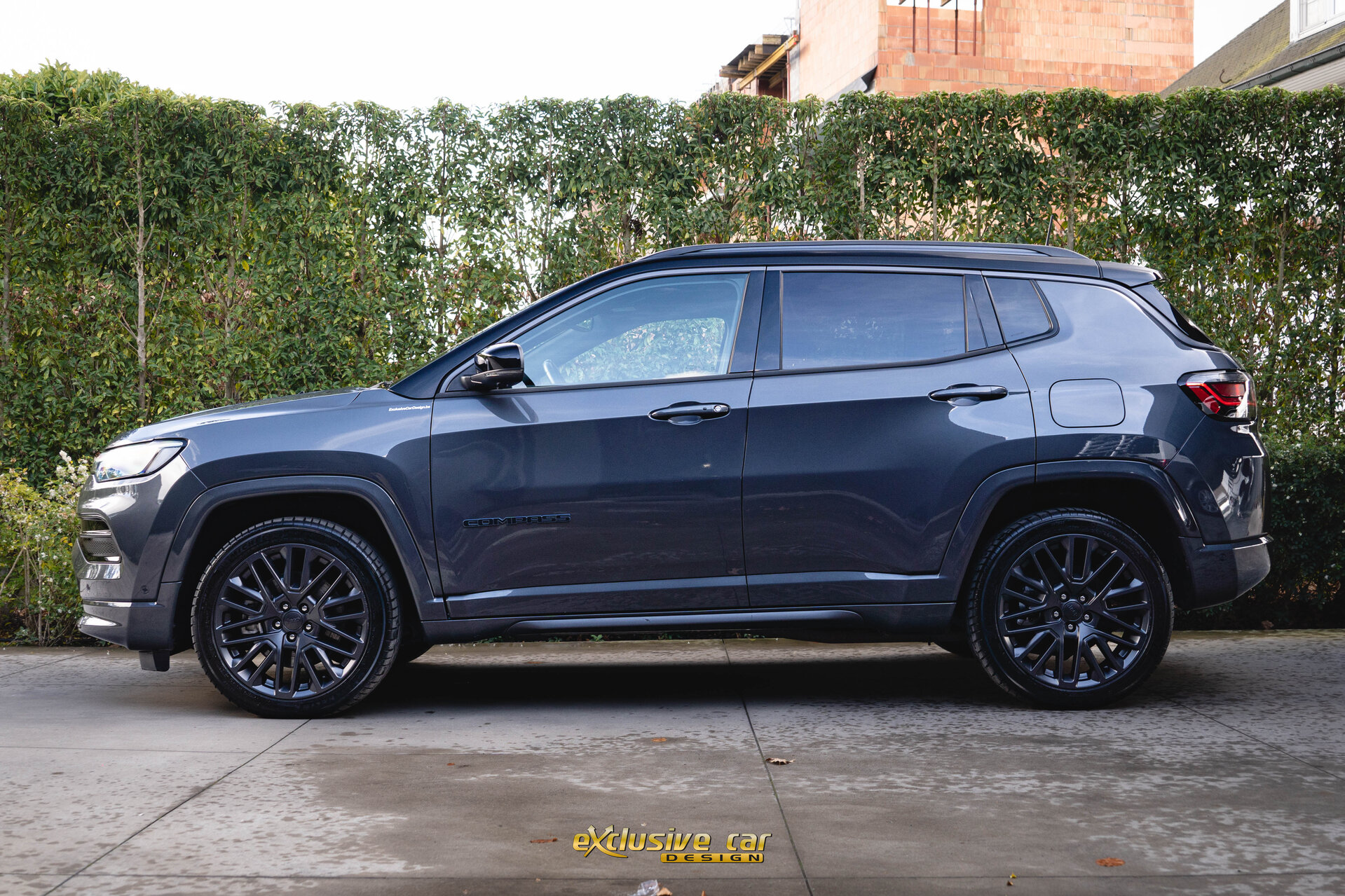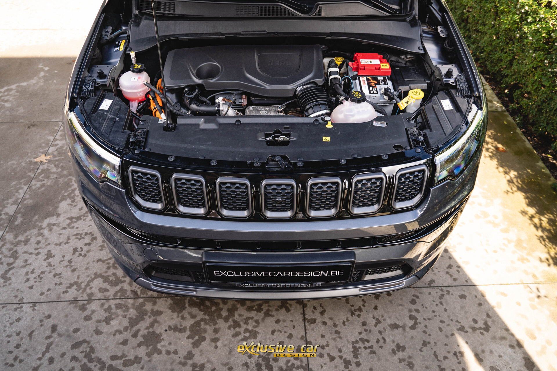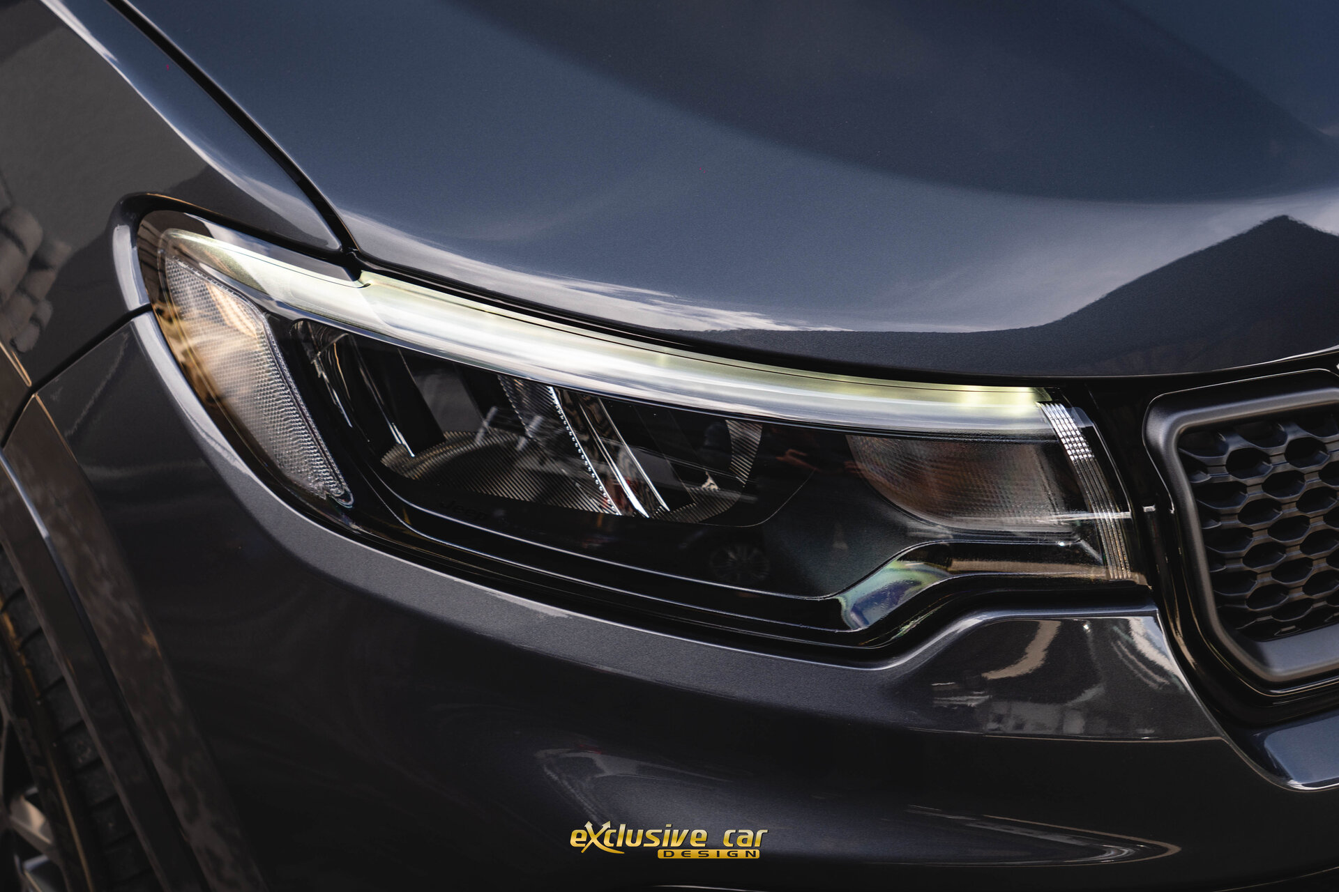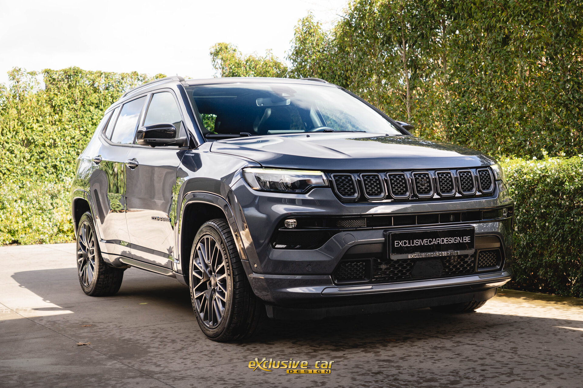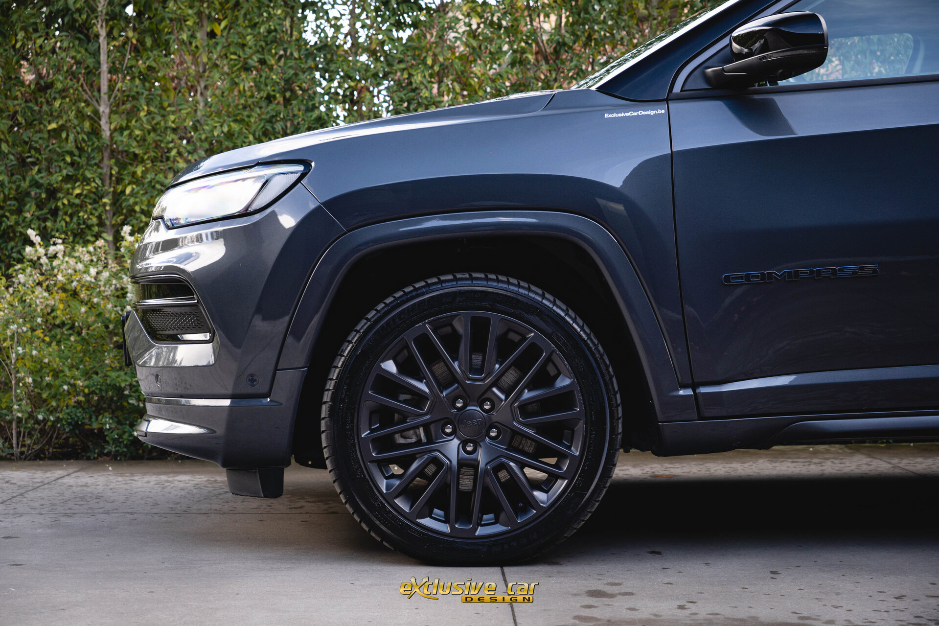 - Zwart dak, raamomlijsting en Jeep logo's