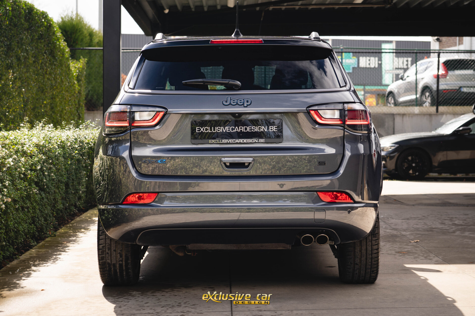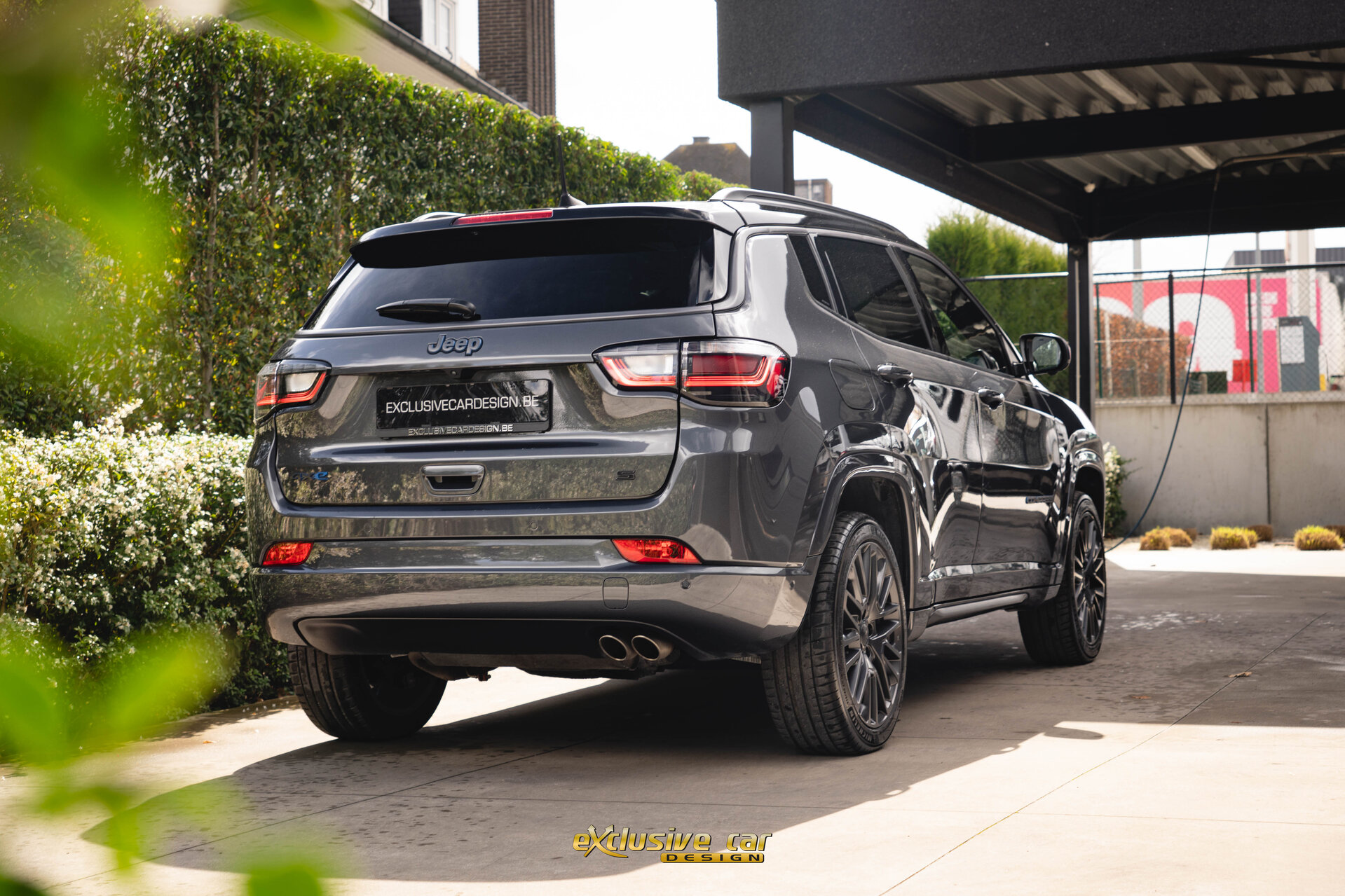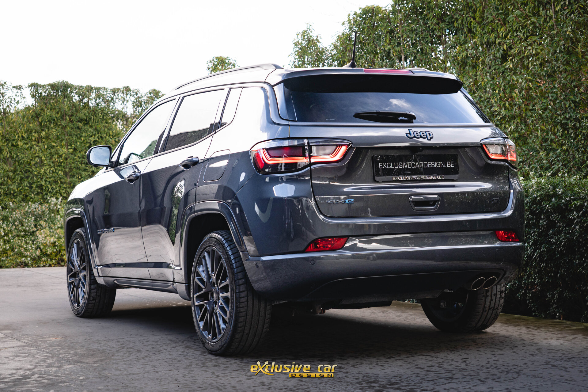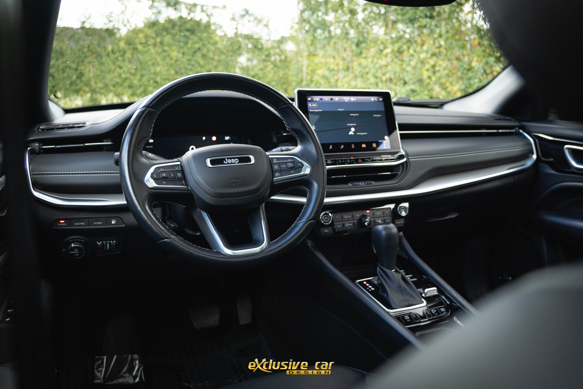 - Zwart dak, raamomlijsting en Jeep logo's