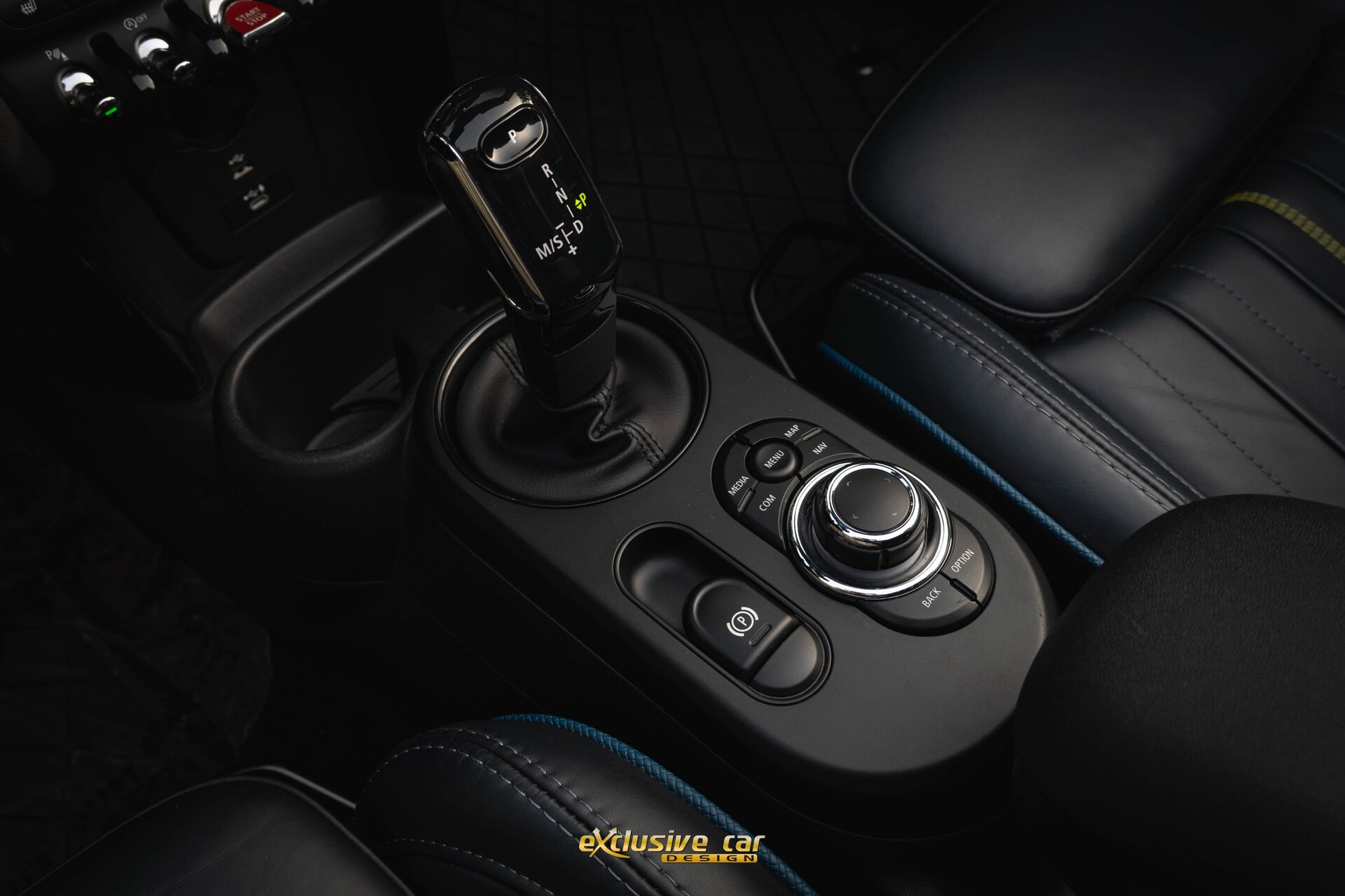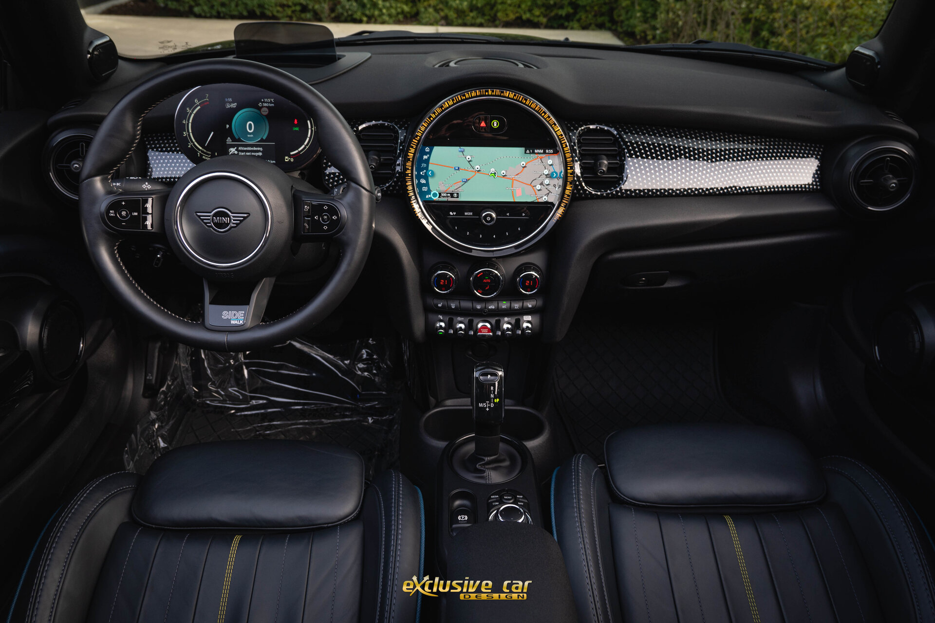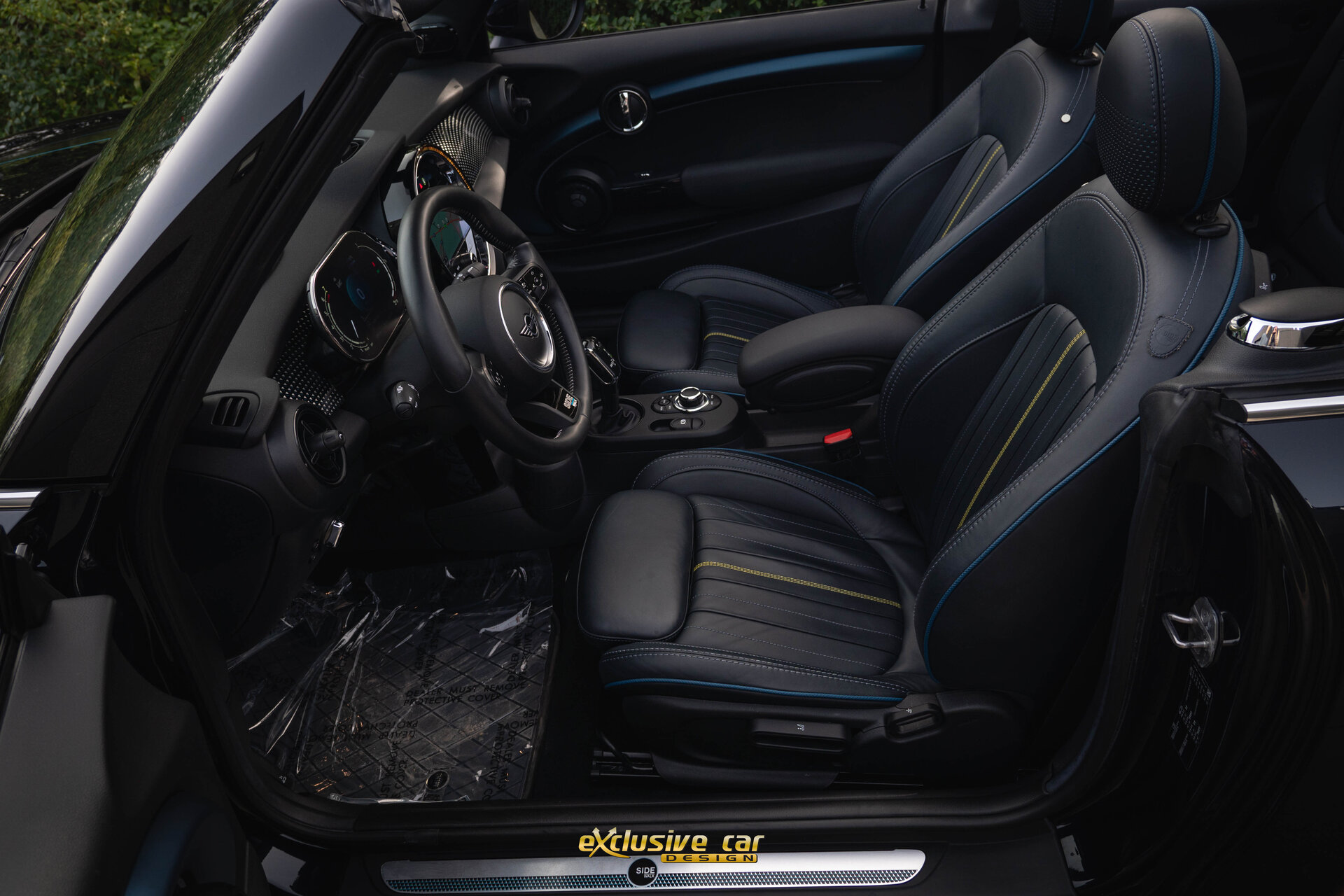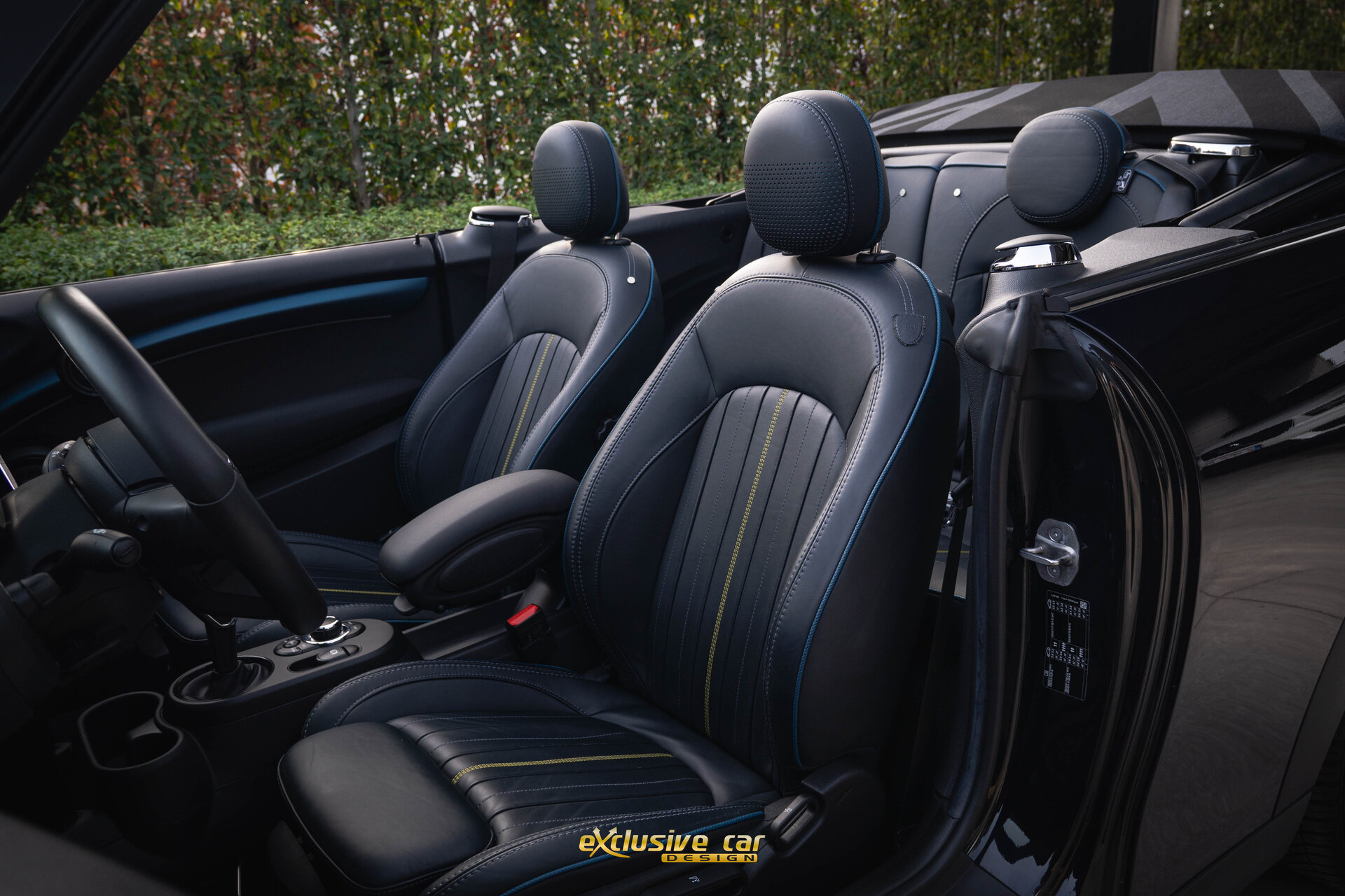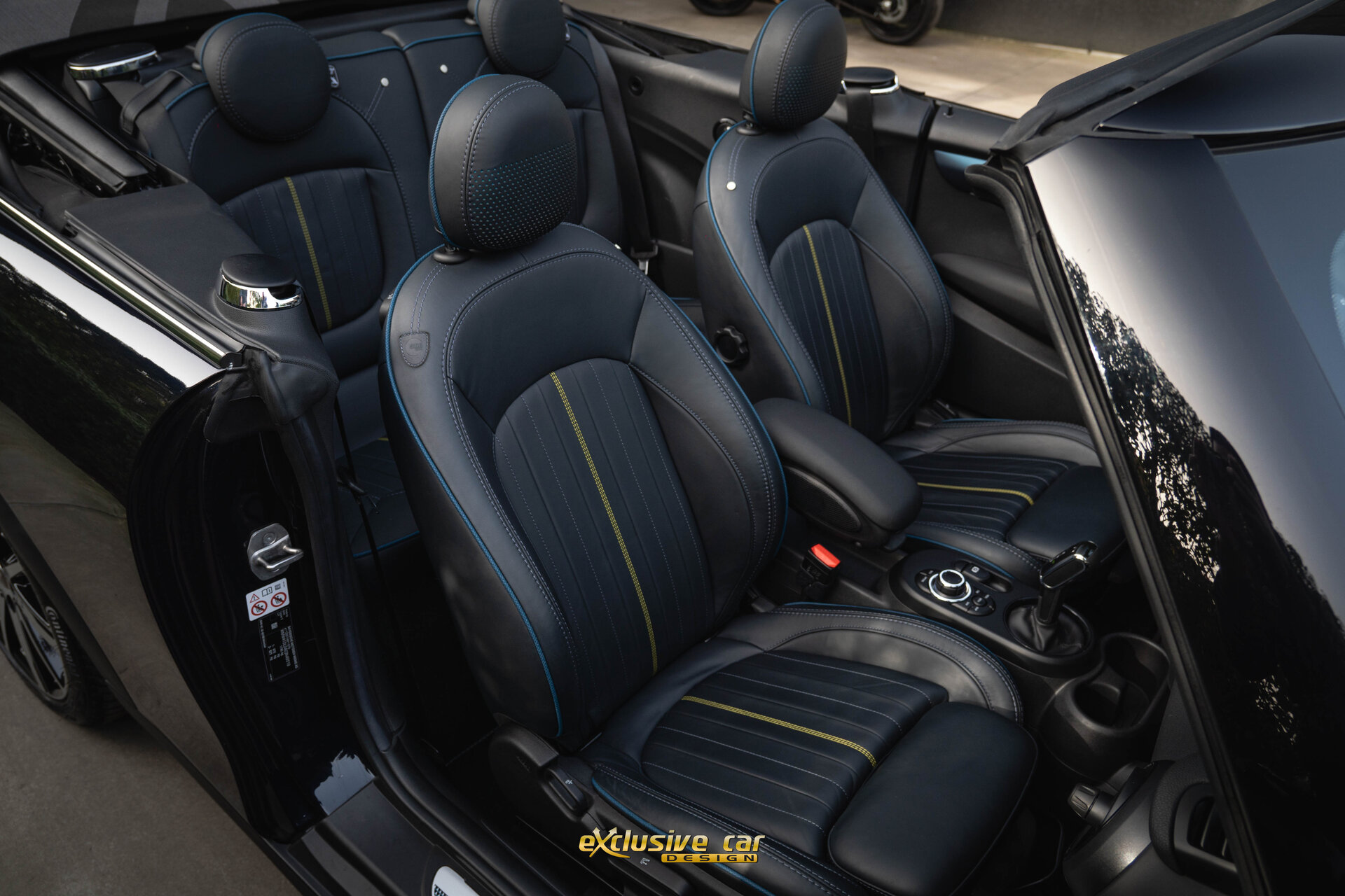 - Sportzetels met Mini Yours Lounge Leder in Sidewalk Anthrazit, met accenten in Petrol en Energetic Yellow