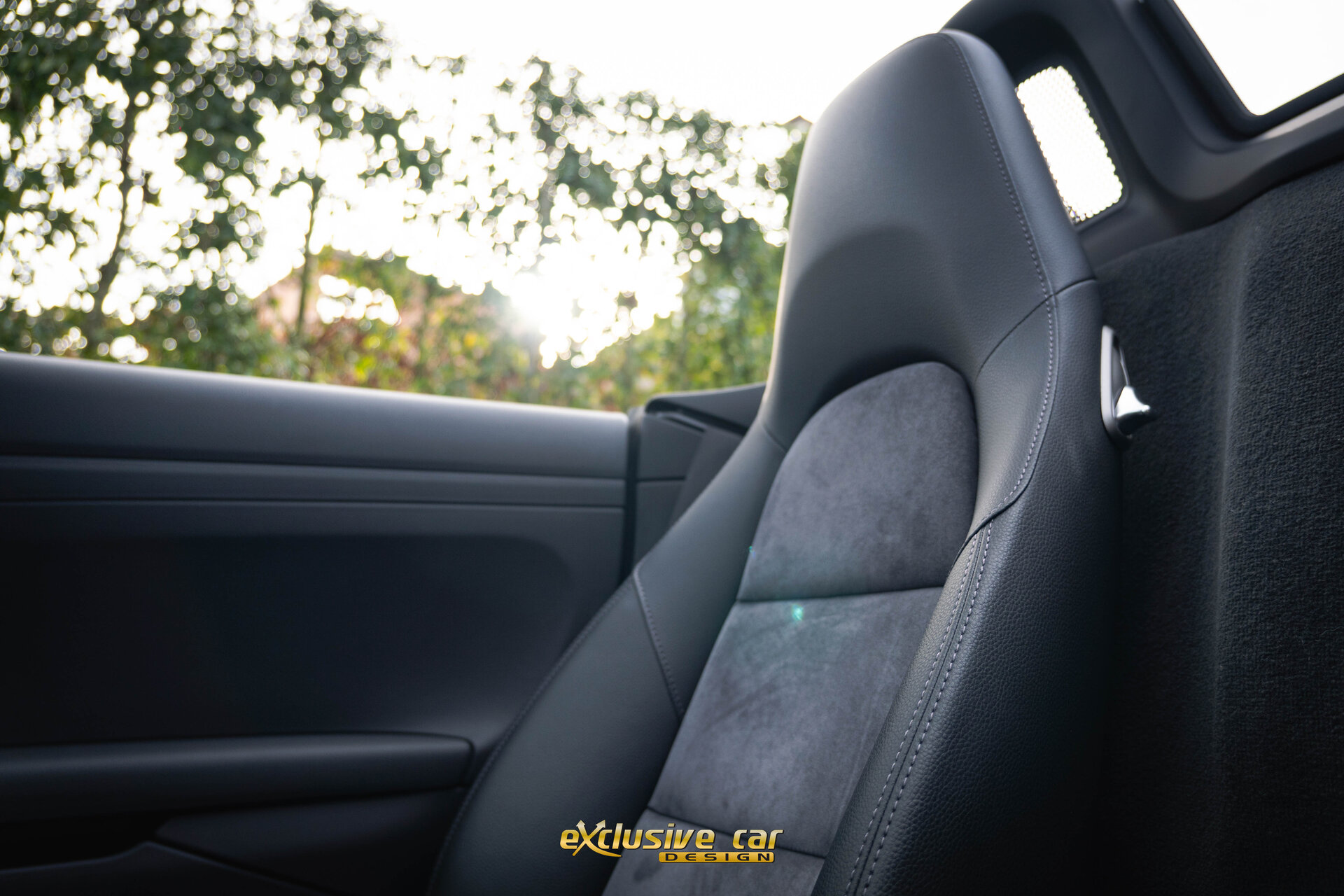 - Sportzetels 2-way elektrisch verstelbaar in leder en alcantara, met zilveren contraststikselsz