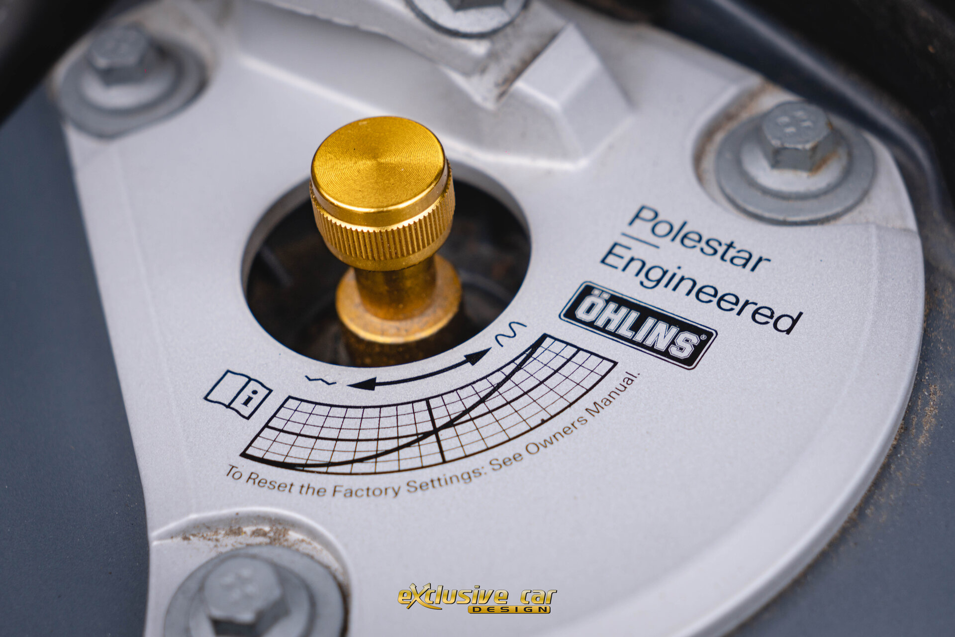 - Polestar chassis met goudkleurige Öhlins instelbare dempers met Dual-Flow Valve, aangepaste voorvering en aangepaste composiet bladveer achter