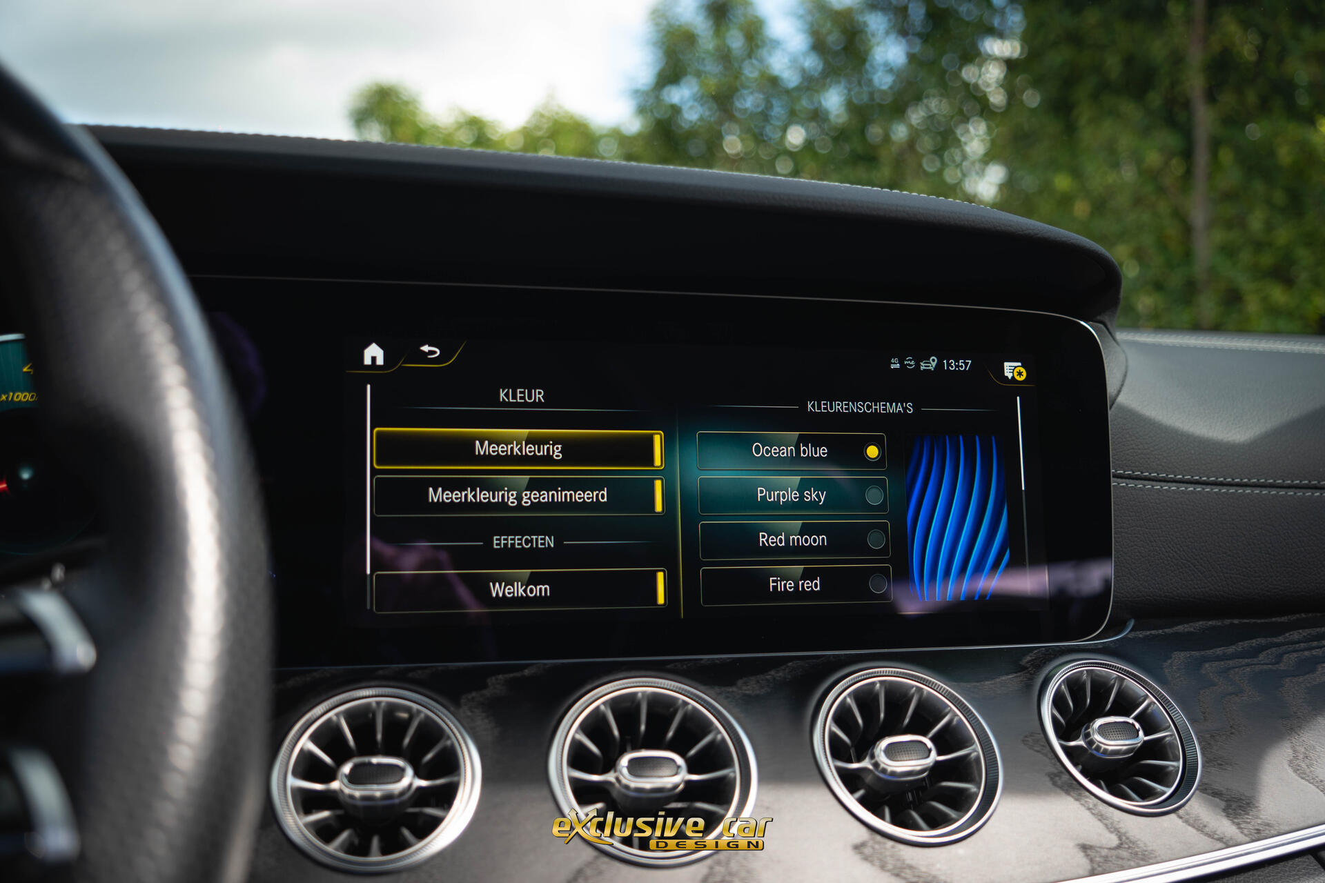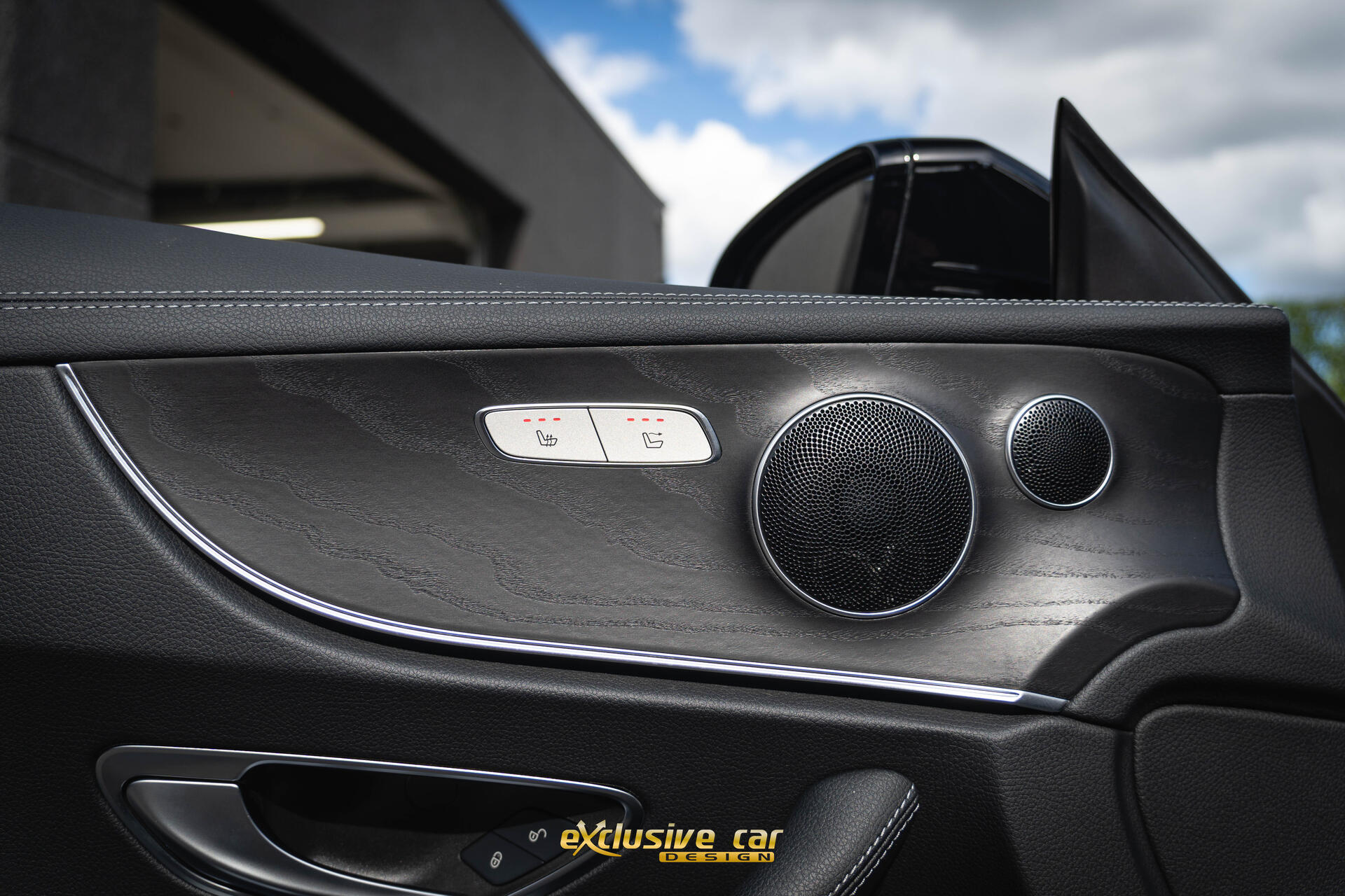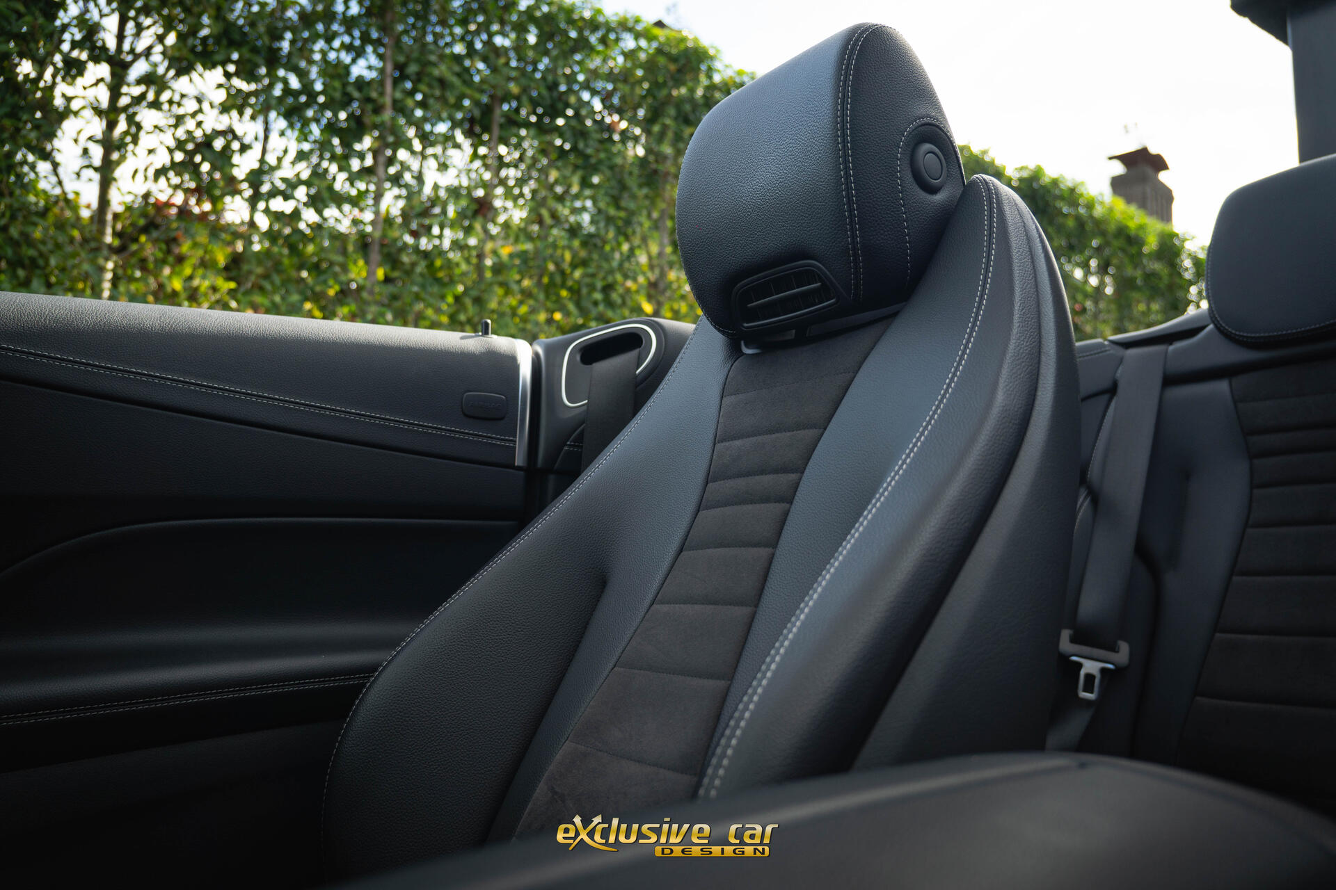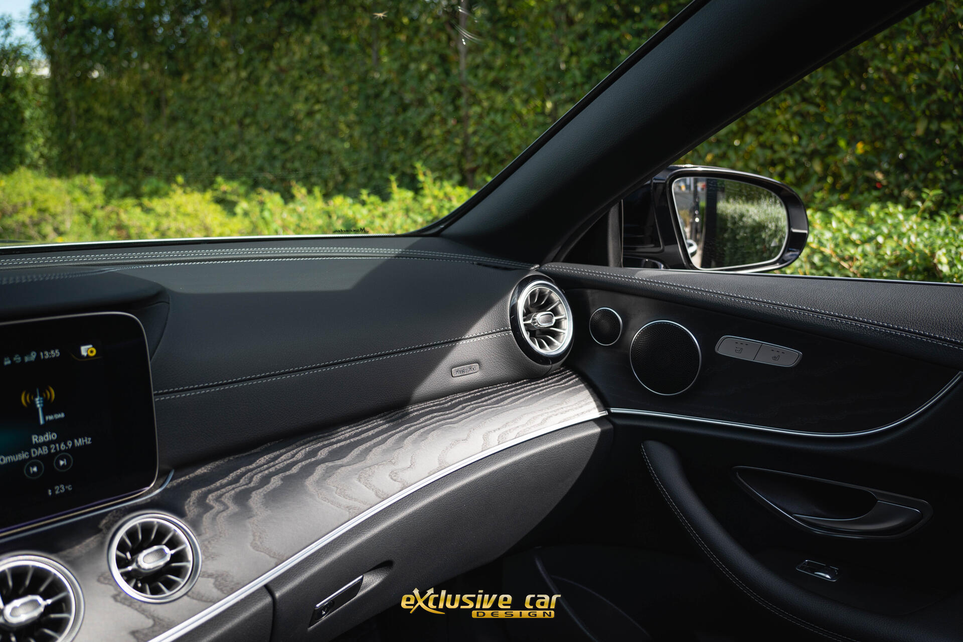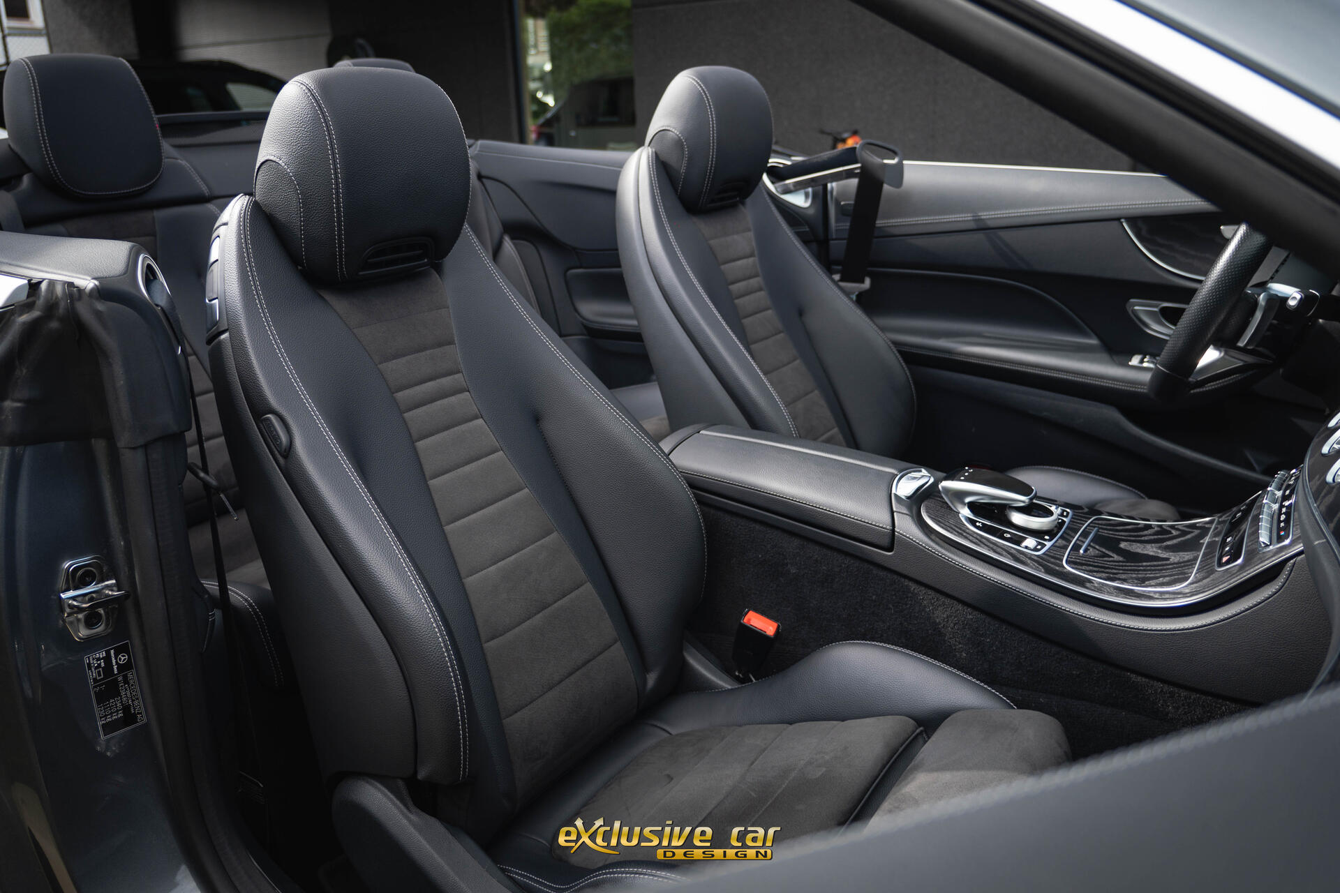 - Dashboard en deurpanelen in kunstleder met contrasterend stiksel